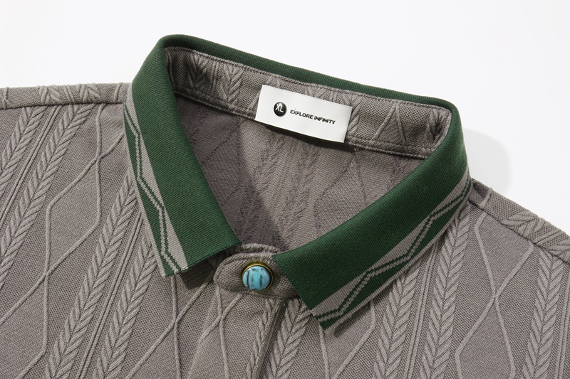 Title: High-End estilo retro americano de manga curta masculino para camisa Polo logotipo personalizado de malha com nervuras tecido seda Mulberry Wor anti-rugas