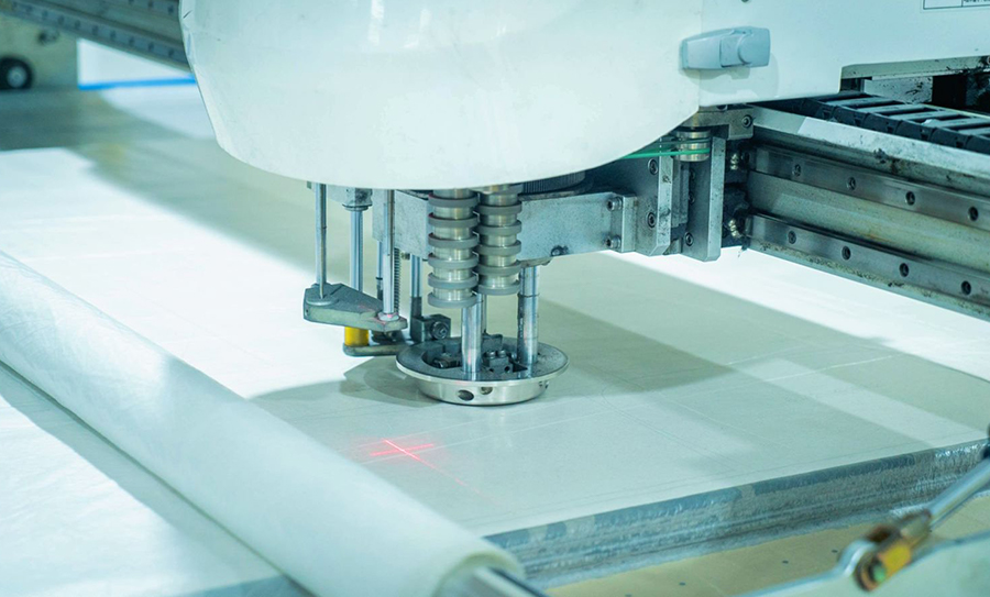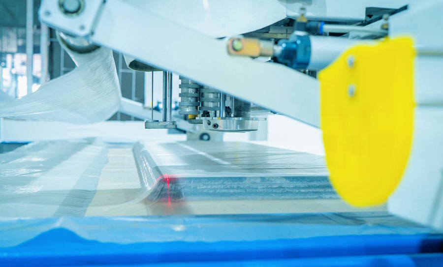 Fabric is then spread out in long, multi-layered plies on the cutting table according to the marker's length and ply height.